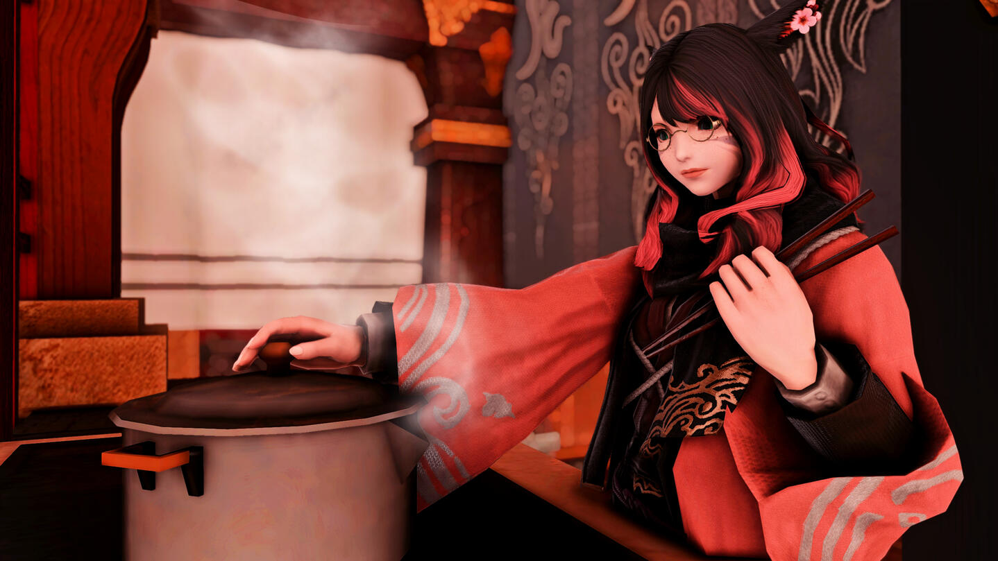 After honing her crafting skills, Valarie found herself faced with an abundance of resources and a burning desire to make a difference once again. Inspired by the teachings of her mentors and the backing of the syndicate, the young Miqo'te felt the call to serve in a new way. With her heart set on culinary endeavours, she delved back into the realm of crafting with renewed fervour.Her days became a whirlwind of experimentation and creativity. Armed with her trusted knife, ladle, and chopsticks, Valarie set out to recreate the cherished recipes she had once mastered in the kitchens of the Atsume manor in Hingashi. Drawing from the rich culinary traditions she had been exposed to during her time there, she added her own unique twists, blending flavours and techniques from different regions of the realm.With each dish she prepared, she poured her heart and soul into the culinary creations, ensuring that every bite would evoke a sense of comfort and delight. As she honed her skills, she knew that this wasn't just about crafting food; it was about crafting experiences, memories, and moments of happiness for those who would partake in her culinary creations.In her pursuit of creating a haven for the hungry, Valarie sought the expertise of a renowned housing builder, enlisting the help of an esteemed Au Ra craftsman. Together, they embarked on the ambitious project of constructing her very own noodle shop. Brick by brick, table by table, they painstakingly brought her vision to life, infusing the establishment with the warmth and charm that reminded her of home.Located prominently in the bustling district of The Goblet, the noodle shop stood tall, beckoning passers-by with the mouth-watering aromas wafting from its kitchen. The delicate blend of Hingan-inspired décor and the diverse array of dishes on the menu set it apart from any other eatery in the realm.Upon its grand opening, the noodle shop quickly became a favourite among locals and travellers alike. Patrons would find respite within its walls, savouring the delectable offerings prepared by Valarie's own hands. Her dedication to her craft and the genuine love she poured into her work left a lasting impression on all who visited, creating a warm and welcoming atmosphere that drew people back time and again.Valarie's haven for the hungry became not only a place to satiate one's appetite but also a space where stories were shared, friendships were forged, and laughter filled the air. Her humble noodle shop became a hub of community, a testament to the power of culinary artistry and the impact of a warm heart.