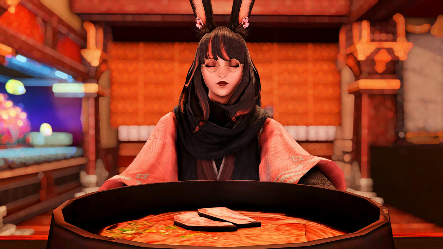 With the long winding adventure behind her, Valarie finally found a moment of solitude, allowing herself to confront the deeper fears that had emerged during her intense battle with the manifestation of despair. Her mind spun through countless scenarios, haunted by the looming threat of failure, until she arrived at a resolute decision. If she wanted to become the person she aspired to be, she had to endure the test of time.During her sojourn in The First Shard, she had learned about the Viera people and their extraordinary ability to live for hundreds of years. That was the path she needed to tread—a long-standing beacon capable of withstanding the unrelenting passage of time to achieve her dreams.Utilizing her forged friendships with members of the Ul'Dahn syndicate, she embarked on a quest to acquire a single phial of Fantasia, an elixir said to transform one's physical form, granting them new attributes that would remain till the end of time, or until another Fantasia was consumed.Finally, back in her bustling restaurant, she stood solemnly in her kitchen, silently crafting a batch of noodles. Her hands worked intricately, subtly integrating the mysterious elixir into the broth as she prepared the soup. When the dish was ready, she carried it to a quiet table and sat down, pausing for a moment to whisper a small prayer to her patron deity, Nymeia."In the name of the Mother, I give thanks for guiding me through the storms, for leading me in battle, and for the camaraderie of my steadfast companions. I am grateful for all that you have bestowed upon me. As you have done for me, I shall serve as a guiding light to those who have lost their way and offer aid to those yet to be found."Completing her prayer, she closed her eyes and began to eat the soup. The transformation process, while seemingly painless, was profound. As she reopened her eyes, she found herself sitting higher in her chair, her tail absent, and her once floppy, cat-like ears now replaced with long, elegant lapine ones.Her physical form now aligned with her profound determination to become an enduring being that would last the test of time, she sat silently still. With the gift of extended years before her, she sat straight up in her chair, looking down at her new body, taking it all in before finally releasing a heavy sigh."I'm going to have to buy new clothes aren't I?"